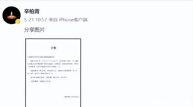 这个讣告发了之后,辛柏青就跟断了网一样,社交账号的头像换成了一个黑白的蜡烛,然后就再也没更新过,一个字都没多说。 他这种彻底的沉默,让所有关心他的人都特别担心,他的好朋友,演员刘天池就说过,自打朱媛媛走了,她和李乃文这些朋友就再也没见过辛柏青。 给他发消息,他就回了一个蜡烛的表情,然后就没下文了,他这是把自己给关起来了。