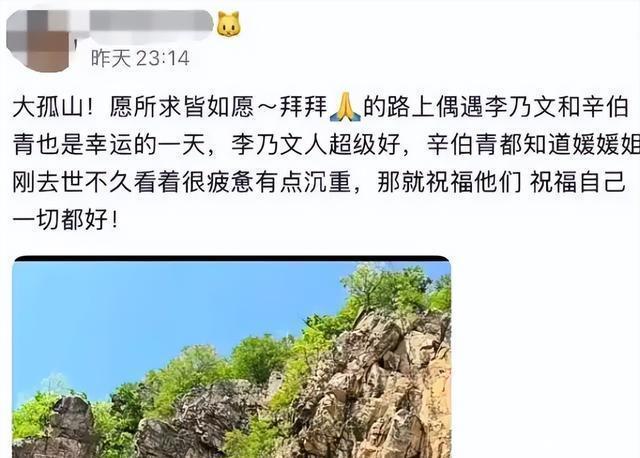 就在大家觉得辛柏青可能还得自己一个人待很长时间的时候,他的好朋友李乃文出现了,这次在大孤山陪着辛柏青父女俩的就是他。 在别人拍的视频里,李乃文走在最前头,穿得挺休闲,精神头看着不错,有粉丝认出他来想合影,他也挺大方地答应了。 他整个人轻松的状态,跟他身后一脸沉重的辛柏青父女俩比起来反差挺大,感觉他不是来分担痛苦的,更像是来帮忙驱散痛苦的。
